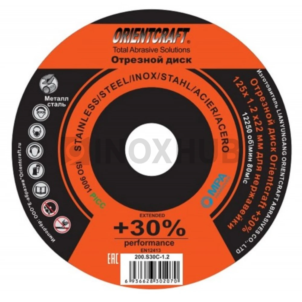 Отрезной диск "Orientcraft" +30%, Ø125х1.2х22 мм, для нержавейки