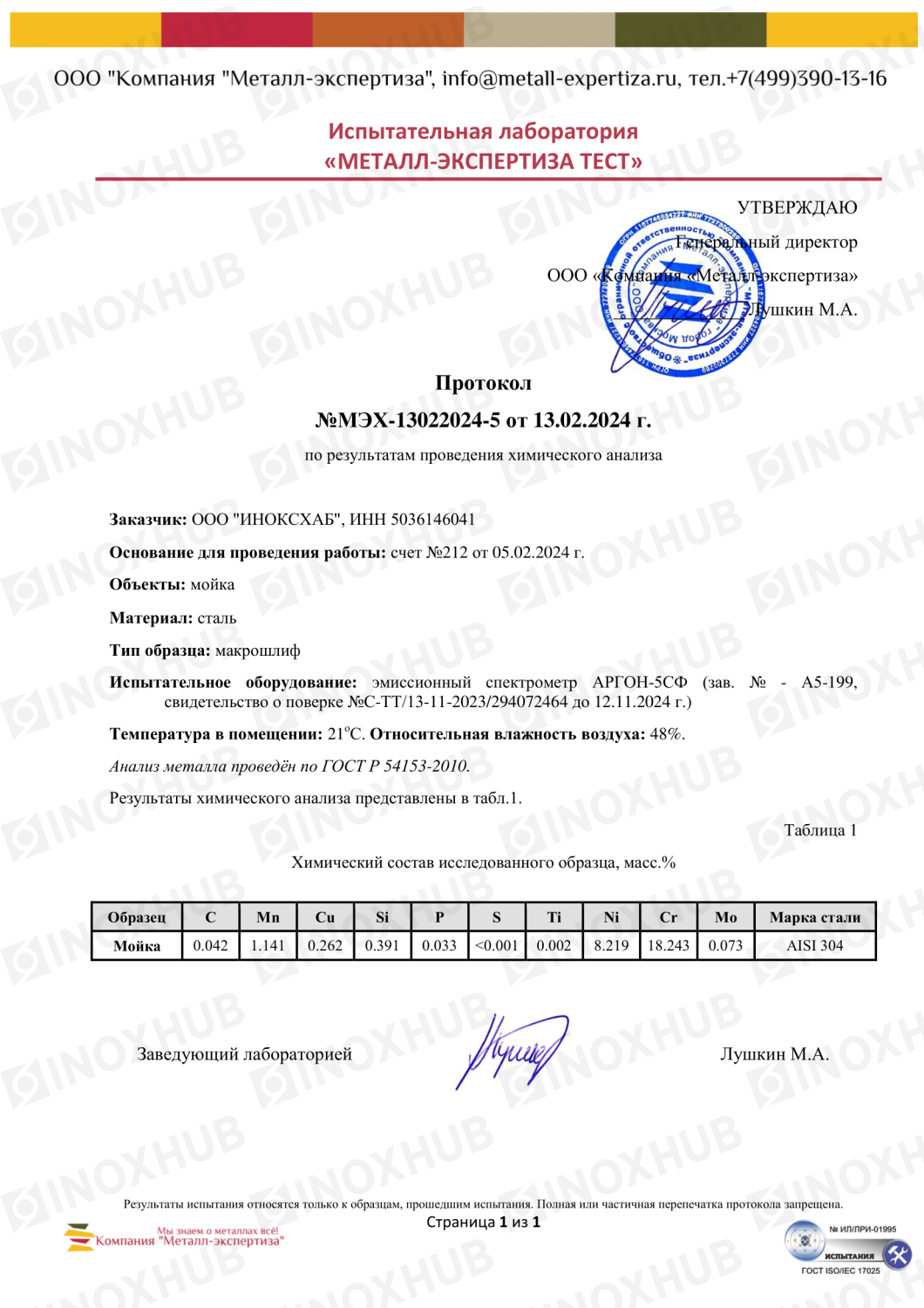 Протокол испытаний №МЭХ-13022024-5 от 13.02.2024 года