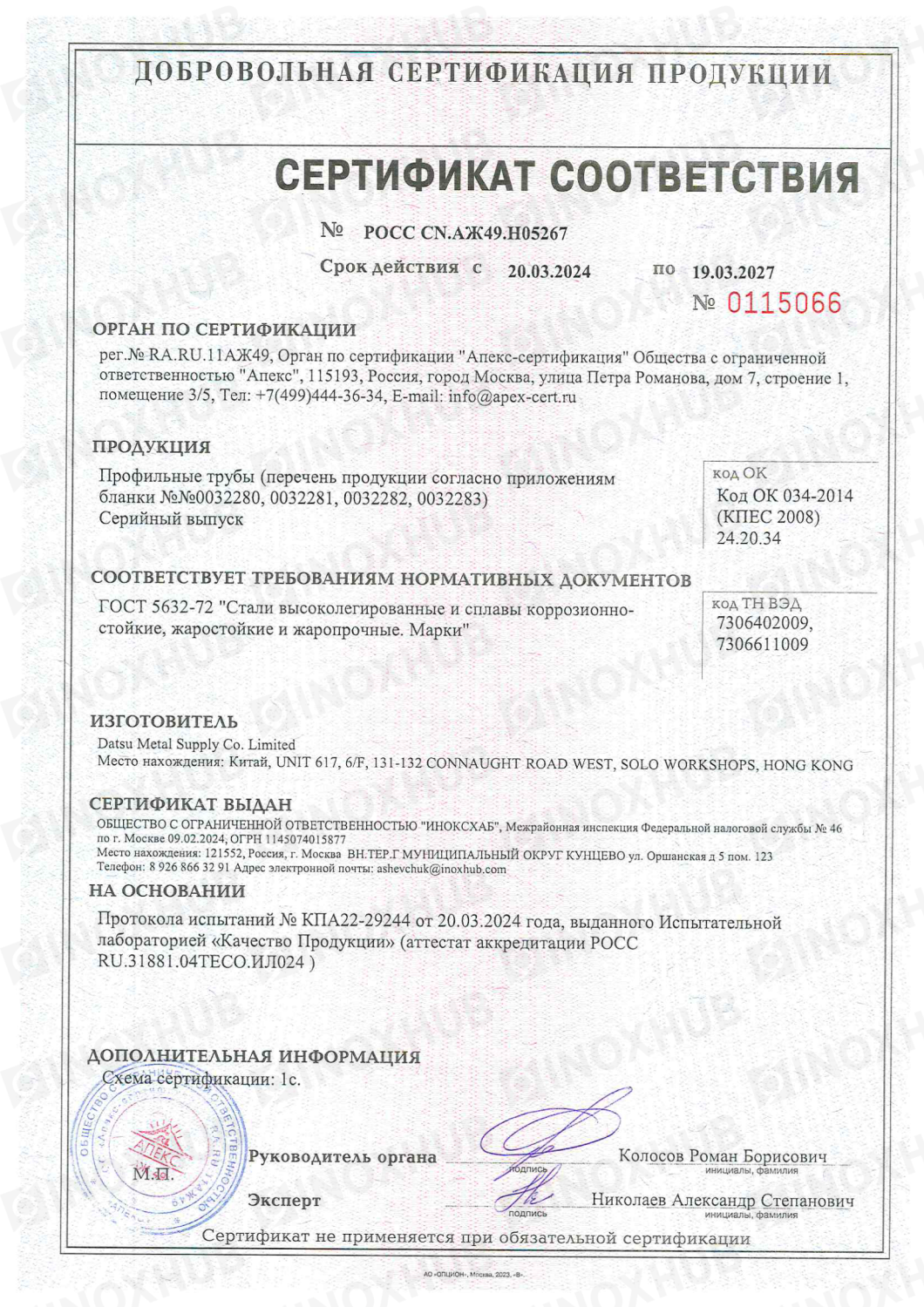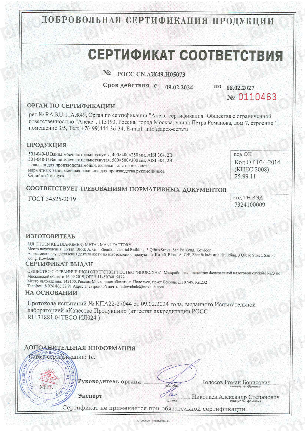 Сертификат соответствия №POCC CN.АЖ49.Н05073