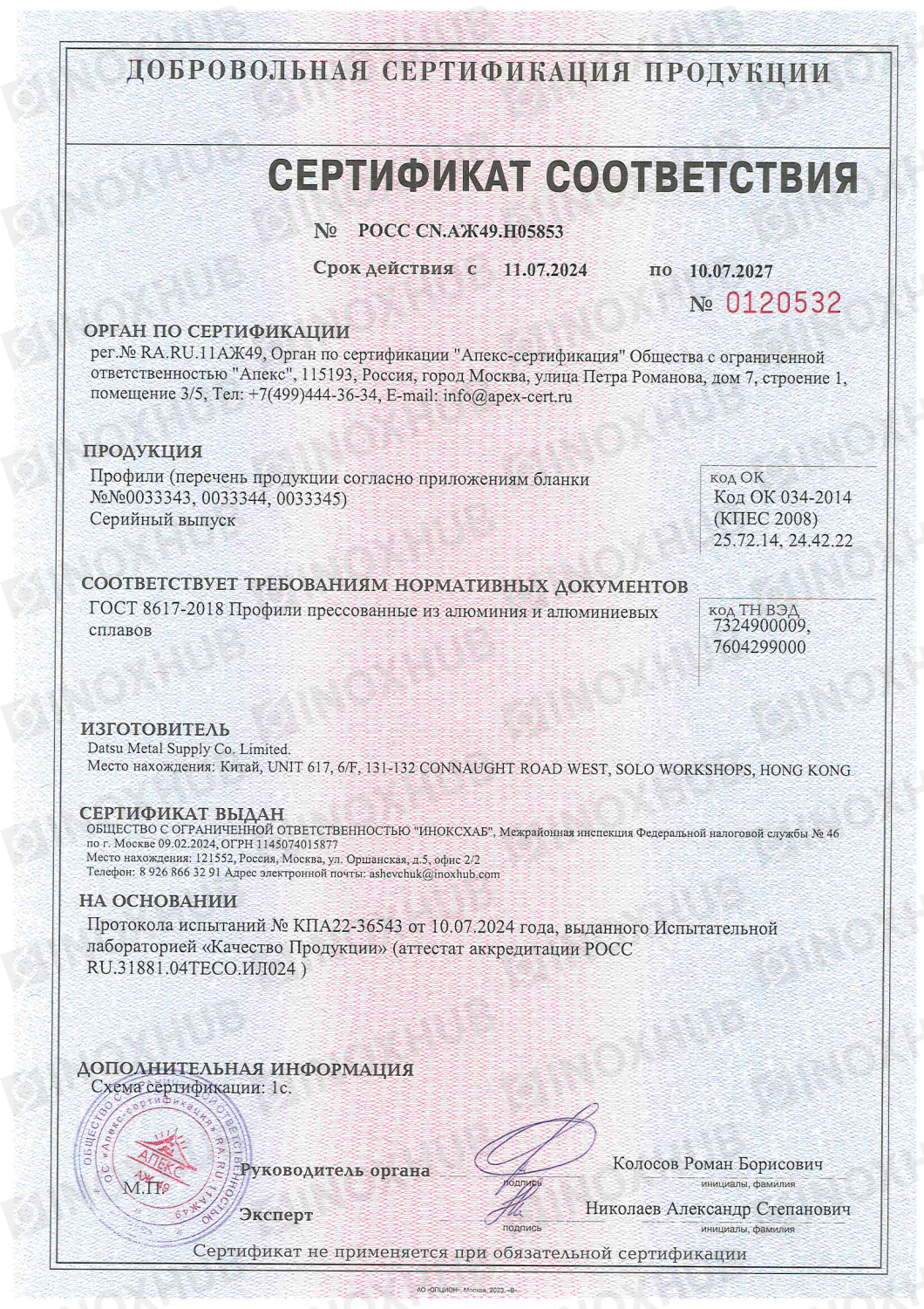 Сертификат соответствия №POCC CN.АЖ49.Н05853