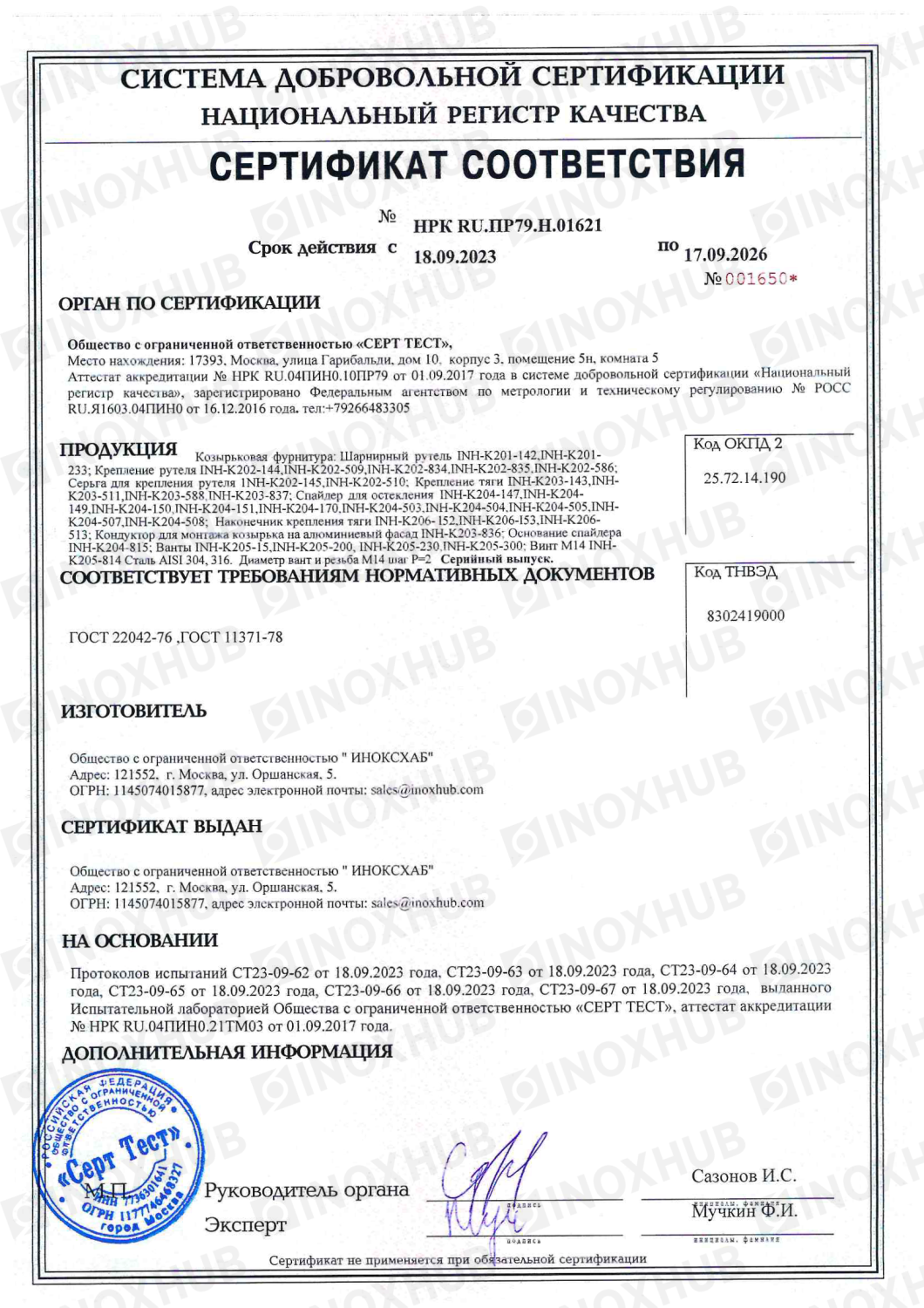 Сертификат соответствия №НРК RU.ПР79.Н.01621