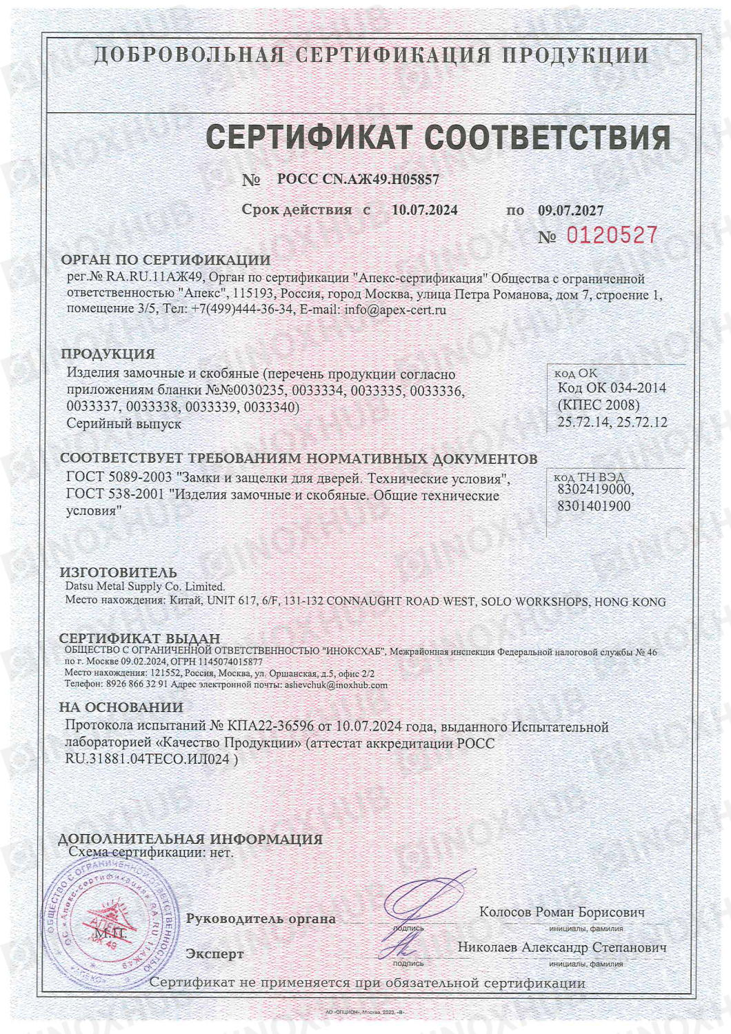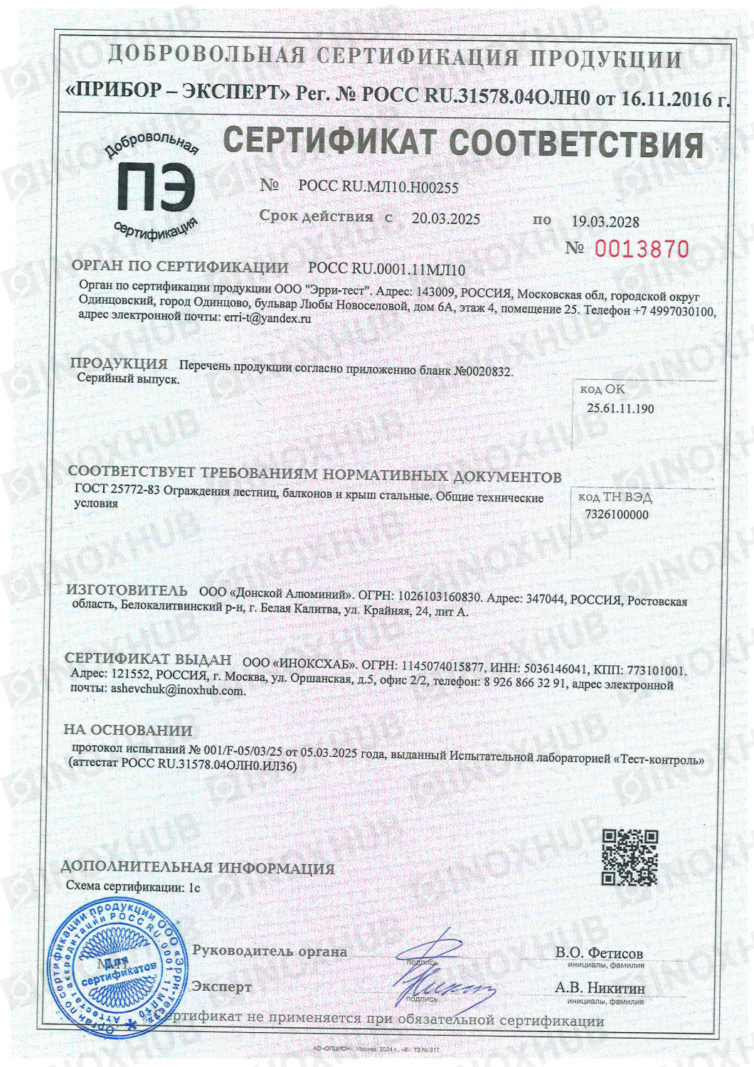 Сертификат соответствия №POCC RU.МЛ10.Н00255
