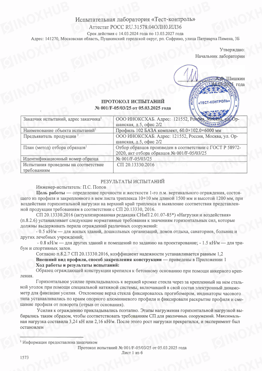 Протокол испытаний №001/F-05/03/25 от 05.03.2025 года