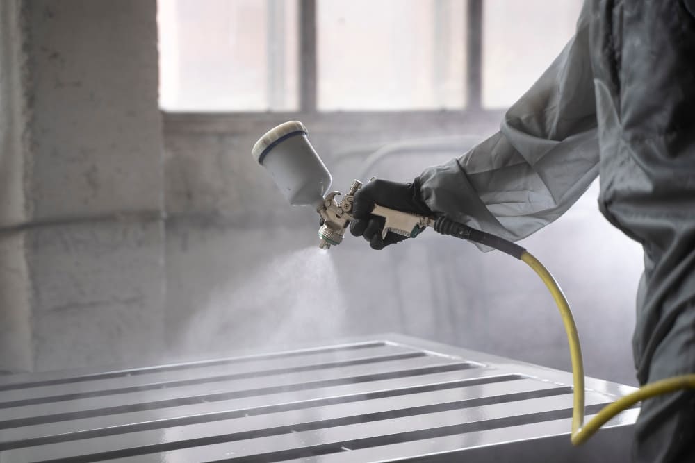 Для нанесения используются жидкие краски для металла, которые хорошо ложатся при работе краскопультом. В состав можно добавить отвердитель — это повысит прочность покрытия. Главное — тщательно перемешать смесь перед использованием. Также популярна порошковая краска. Её наносят электростатическим способом, а затем запекают в печи. Это обеспечивает равномерное, прочное и стойкое покрытие. Такой способ часто применяют в промышленности и для наружных конструкций.