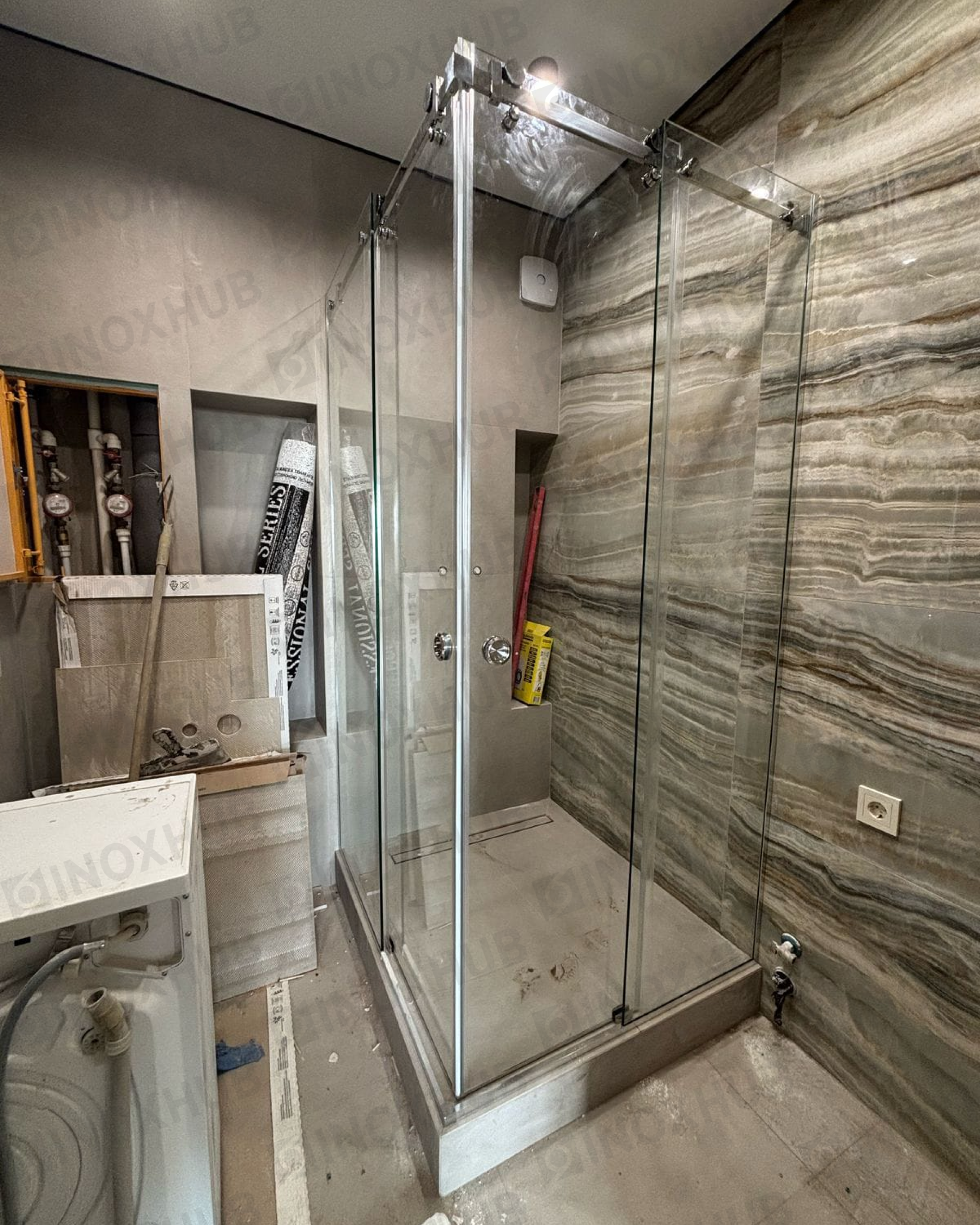 Монтаж душевых кабин из стекла с использованием высококачественной фурнитуры для стекла Inoxhub. Листайте дальше, чтобы увидеть все работы с использованием нашей фурнитуры, а также товары, задействованные в работе