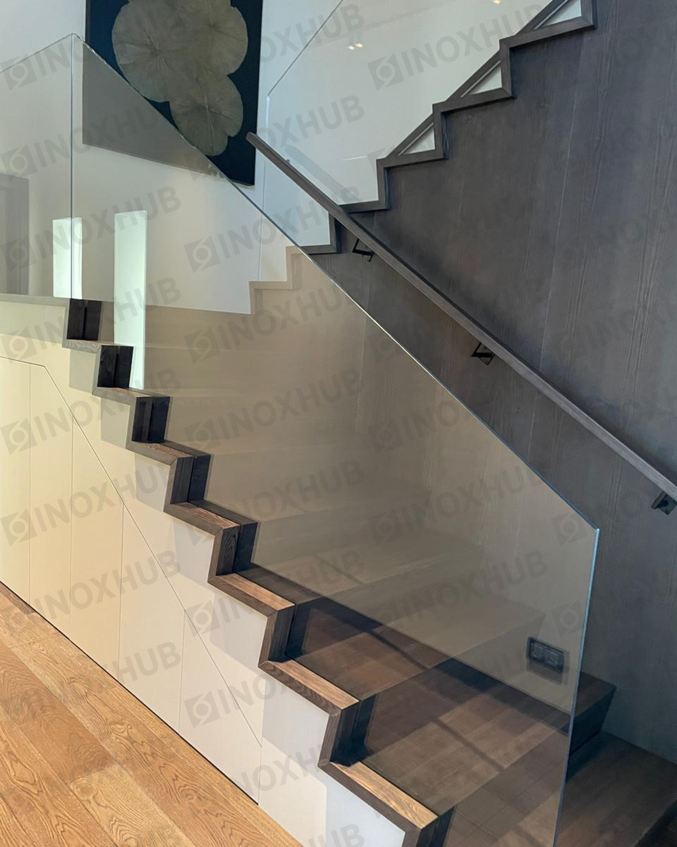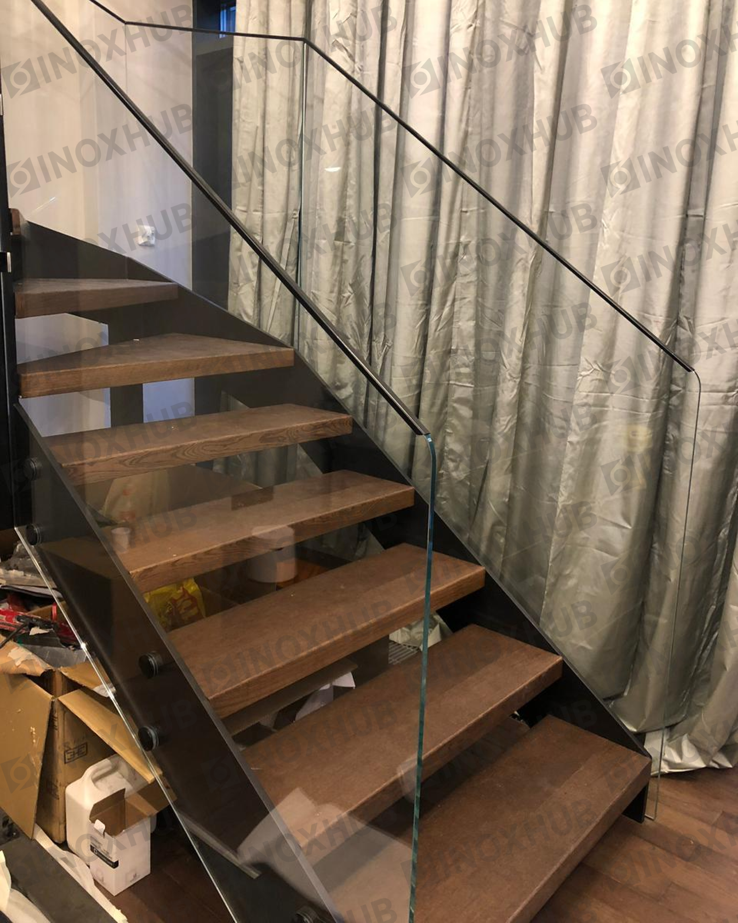 Сборка и монтаж лестничных перил и ограждений из стекла с использованием премиальной перильной фурнитуры Inoxhub. Листайте дальше, чтобы увидеть все работы с использованием нашей фурнитуры, а также товары, задействованные в работе