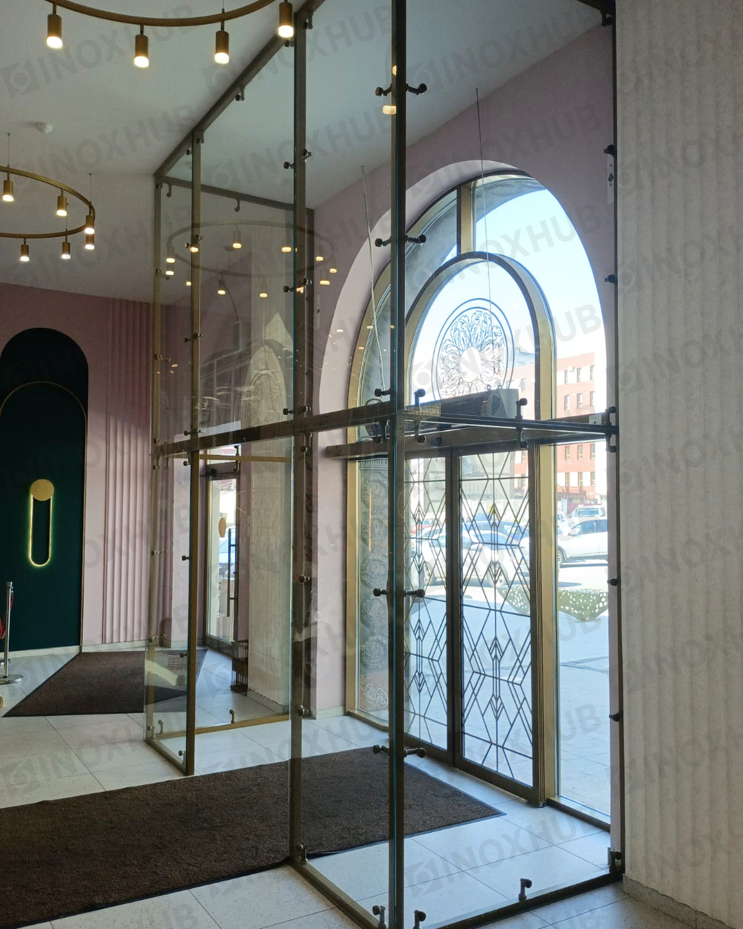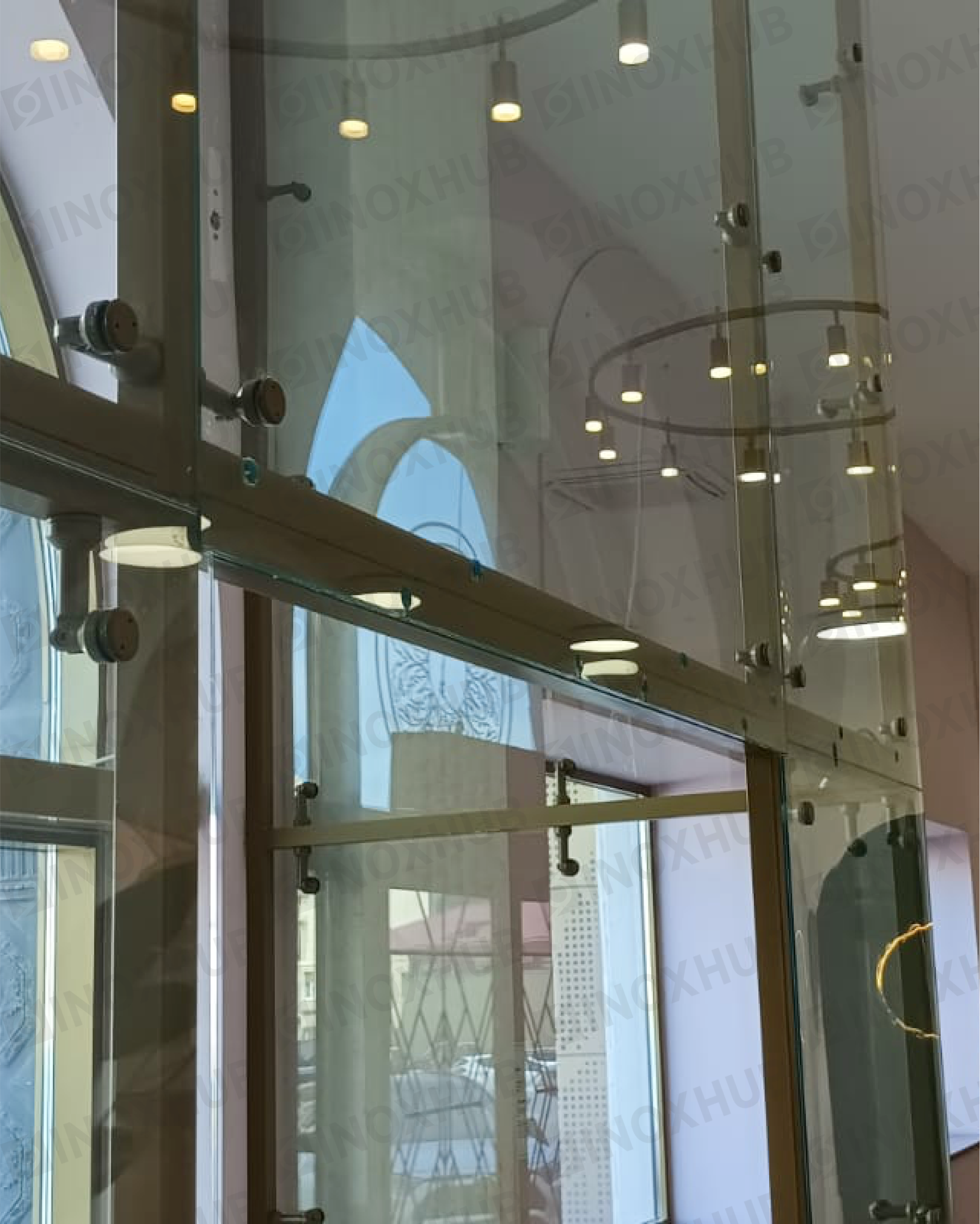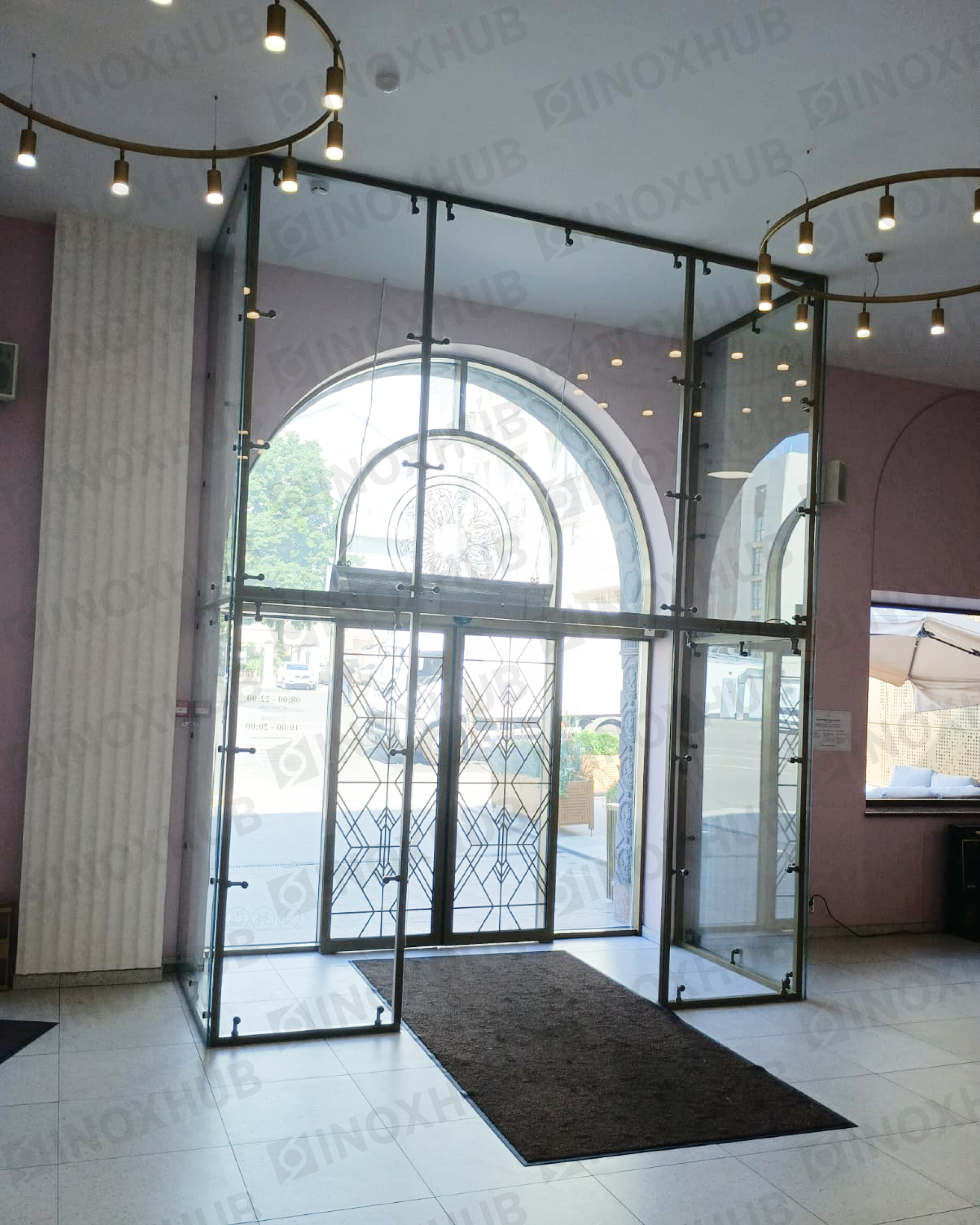Монтаж стеклянной входной группы с использованием фурнитуры Inoxhub