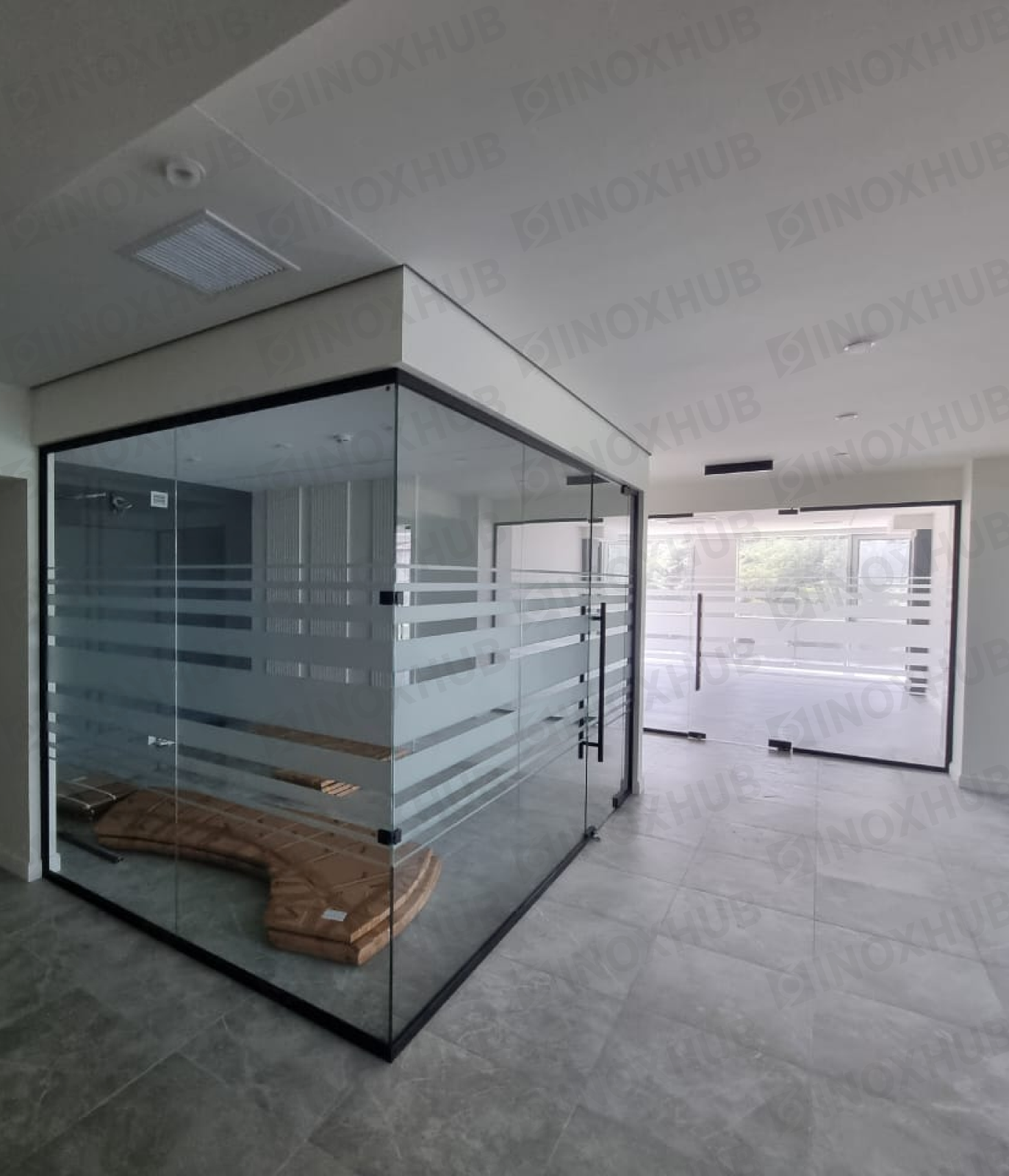 Монтаж офисных перегородок, стеклянных конструкций и офисных дверей, с использованием высококачественной фурнитуры для стекла Inoxhub. Листайте дальше, чтобы увидеть все работы с использованием нашей фурнитуры, а также товары, задействованные в работе